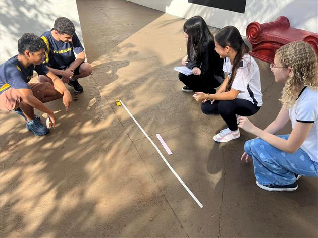 Os alunos do 9º ano calcularam a velocidade média de carrinhos em uma atividade super divertida! Uma ótima forma de aplicar a física na prática!