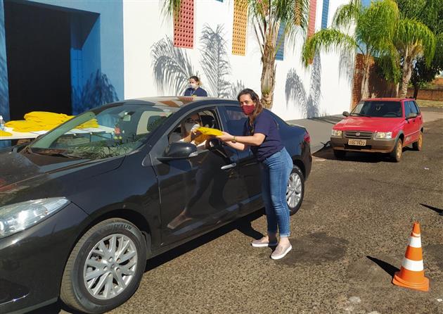 Os materiais do 2º bimestre foram entregues por meio de Drive Thru e seguindo os protocolos de higienização recomentados pelos órgãos de saúde.