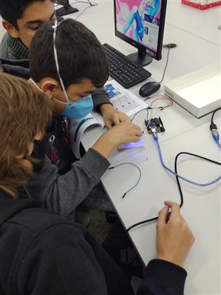 Os alunos do 8° ano começaram trabalhar com Arduino na aula de Robótica.