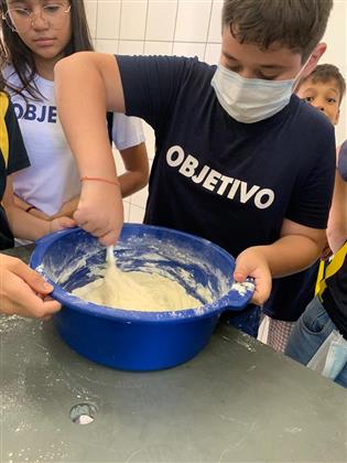 Em aula prática de Ciencias, os alunos do 7º ano aprenderam sobre a fermentação fazendo uma deliciosa receita de pão.