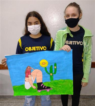 Os alunos do 8° ano, realizaram na disciplina de Arte a releitura da obra "Abaporu", de Tarsila do Amaral.