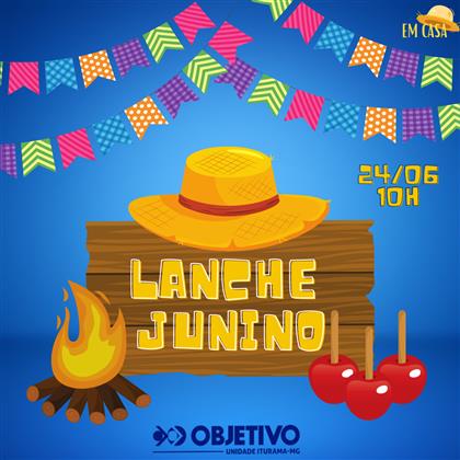 Nesta quinta-feira, teremos o Lanche Junino com os alunos do Colégio Objetivo. Será realizado via Google Meet e daremos início as 10h, cada um com seu lanchinho típico e não vale esquecer o traje.