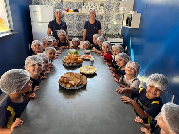 Na Cozinha Experimental do Colégio Objetivo, os alunos da Educação Infantil 2 prepararam o próprio lanche com muita diversão e