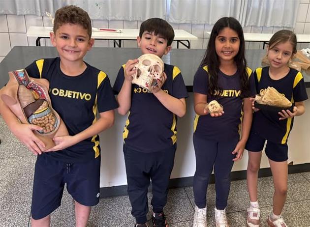 Os alunos do 2º ano participaram de uma aula prática divertida e interativa sobre o corpo humano. Durante a atividade, puderam observar, explorar e compreender como