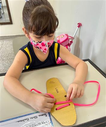 Trabalhando a concentração, a coordenação motora fina e a destreza manual através do alinhavo.