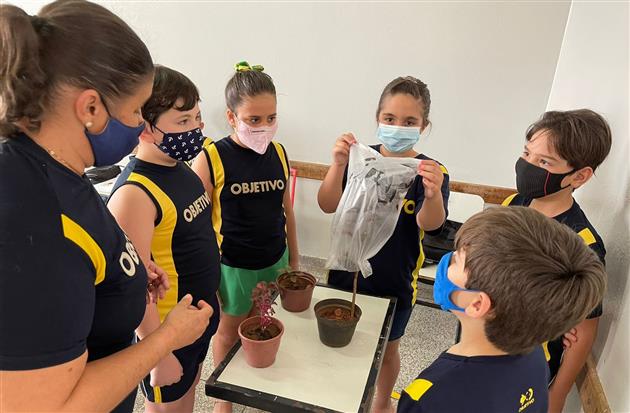 Eles aprenderam sobre plantas, a função das folhas e através de experiências observaram o processo de transpiração das plantas.