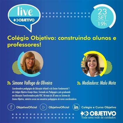 A proposta educacional do Colégio Objetivo é pautada na formação integral do aluno, por meio do desenvolvimento harmônico de todas as suas potencialidades. A escola desenvolveu um processo próprio de ensino, cuja principal característica é estimular a criatividade do aluno com uma programação orientada. Confira na live as práticas pedagógicas que orientam os trabalhos desenvolvidos com alunos e professores do Ensino Fundamental (anos iniciais).