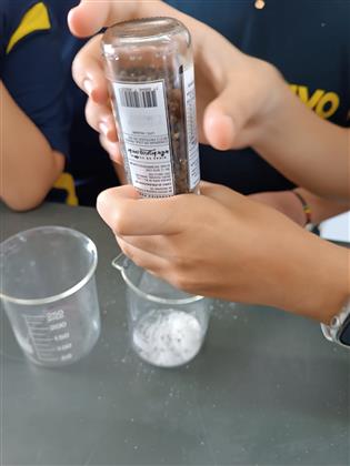 Os alunos do 6° ano desenvolveram atividade prática de separação de misturas com a orientação da professora de Ciências Larissa.
