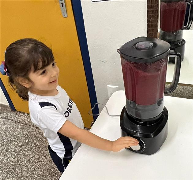 Identificar cores e sabores preparando deliciosos sucos com frutas colhidas no Eco espaço do Colégio é muito mais gostoso.