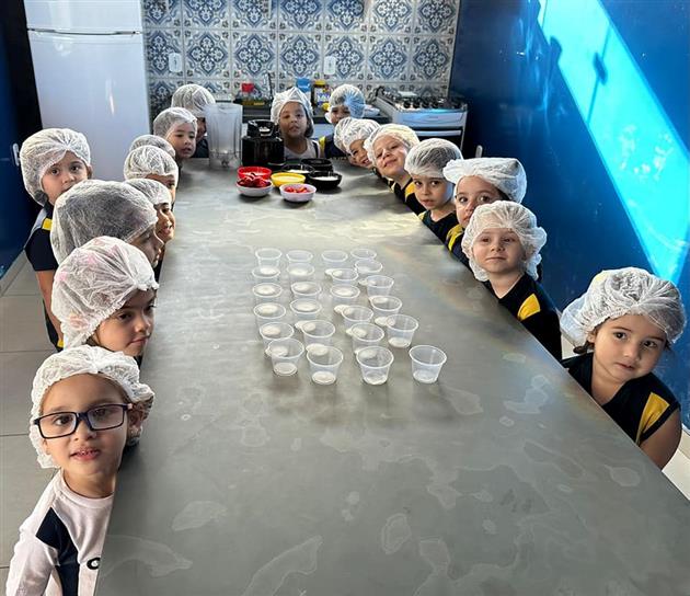 Em um divertido laboratório na Cozinha Experimental do Colégio os alunos da Educação Infantil 2 organizaram os ingredientes, as quantidades, observaram as transformações dos alimentos e provaram o delicioso resultado. Professoras: Rozeni e Tynara